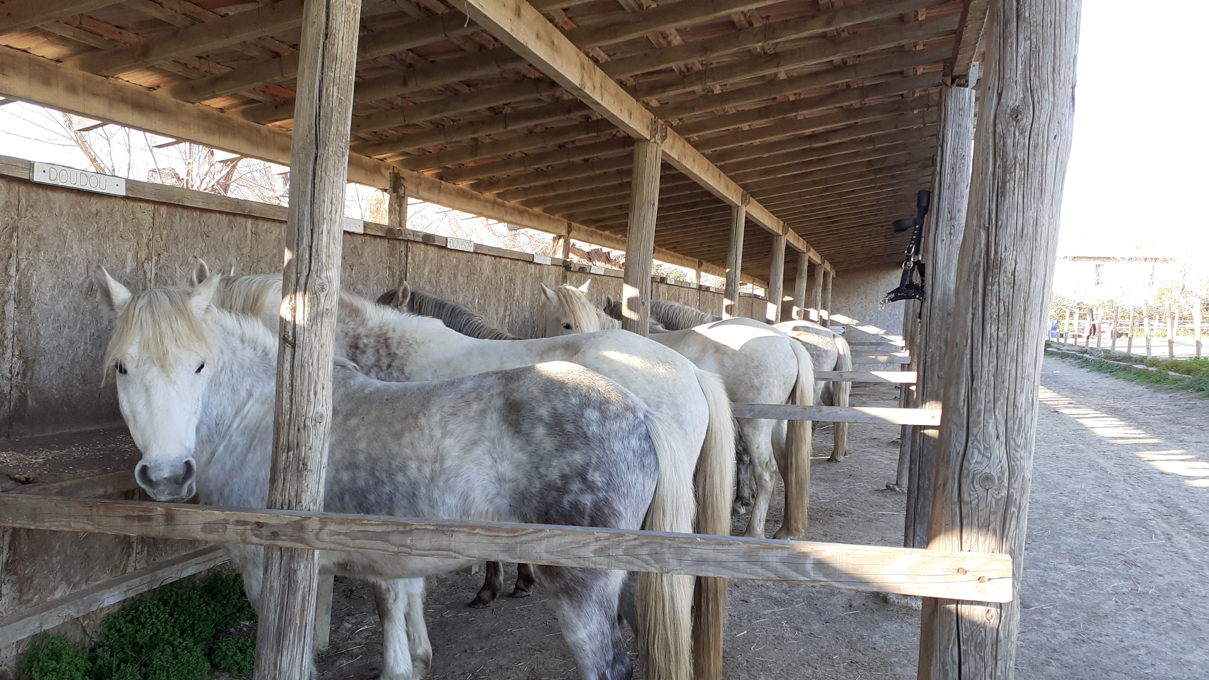 La cavalerie du centre équestre est essentiellement composée de chevaux de race camargue. Ce petit cheval blanc adapté pour vivre dans le marais s'épanouie sur nos terres, loin de son berceau natal. Adapté pour toute les disciplines, il saura vous mettre en confiance, vous faire progresser et vous guideras sur nos chemins de balades à la découverte de notre domaine ou vie un troupeau de vaches Camargue.