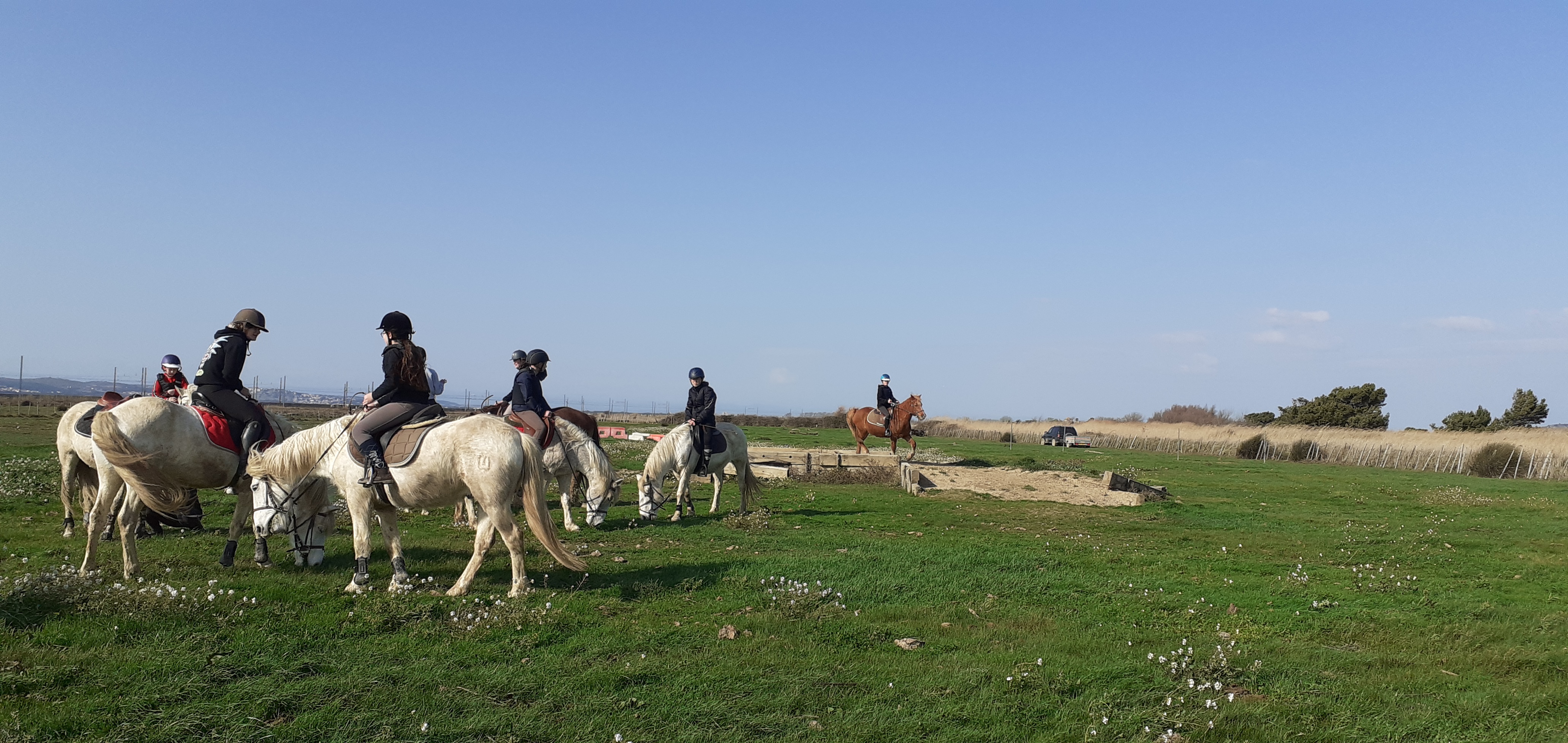 Bienvenue au centre équestre Camar'AD. Situer sur le domaine du grand Tournebelle au milieu des marais du Narbonnais, le club vous accueil toute l'année pour des expériences équestres varié.